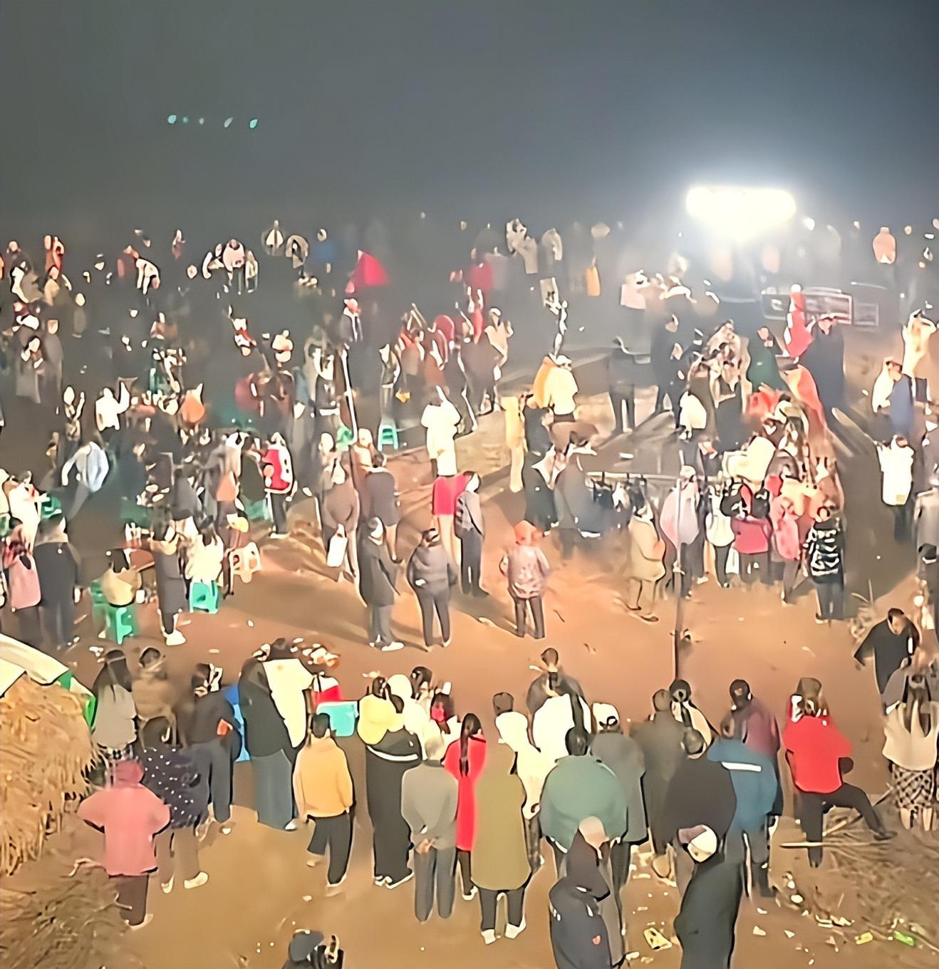 现场彻底变成了大型民俗嘉年华,院子里摆不下桌椅,就在门口的田埂上摆,碗筷不够,一次性餐具成箱成箱地搬,厨师忙不过来,自称做过厨子的网友直接系上围裙进厨房掌勺。