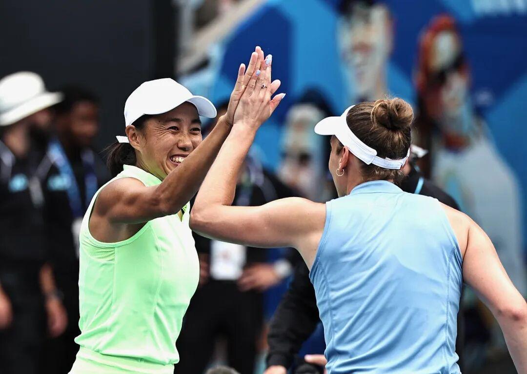 除了郑钦文即将复出这个喜讯外,澳网赛场女子双打也传来捷报。女双1/4决赛中,中国选手张帅搭档梅尔滕斯出战,她们在先输一盘的情况下连扳两盘实现逆转,最终4-6、6-4、6-3战胜穗积绘莉/吴芳娴,晋级四强。